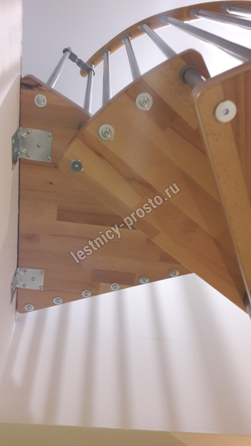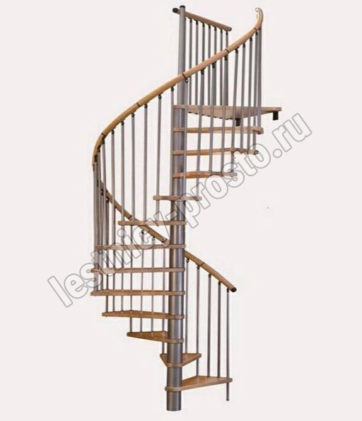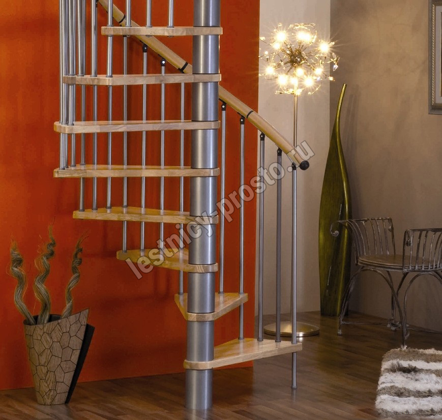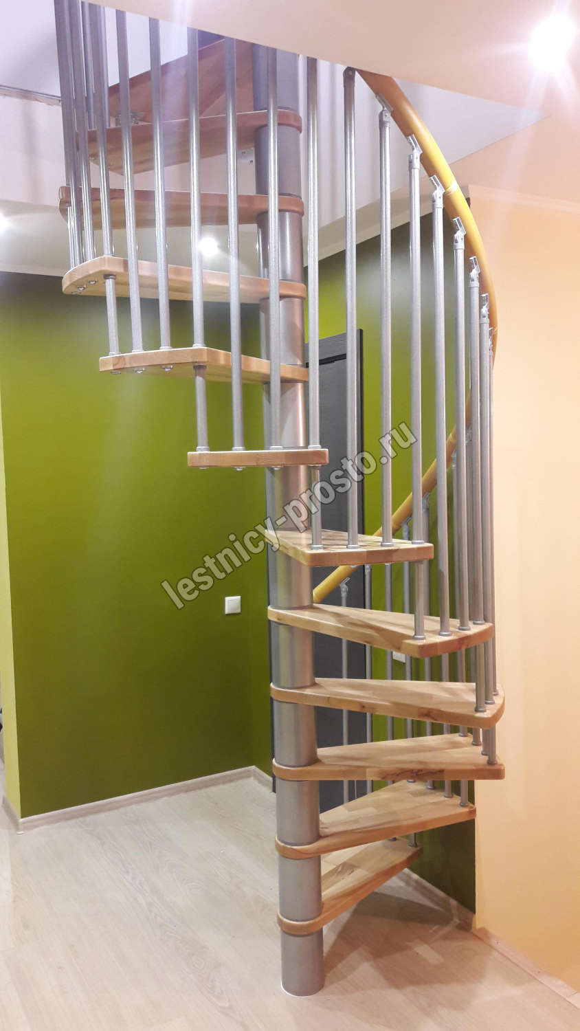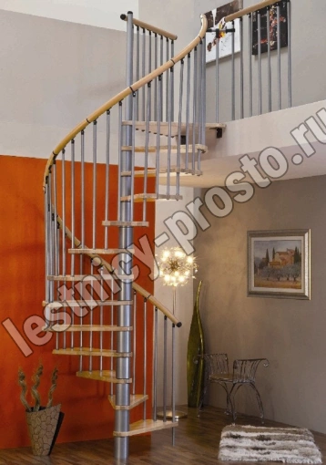 Винтовая лестница SPIRAL WOOD d120 см, серебро, лакированный бук