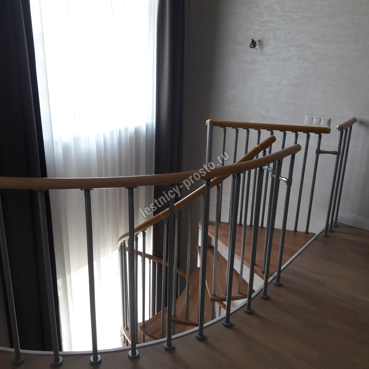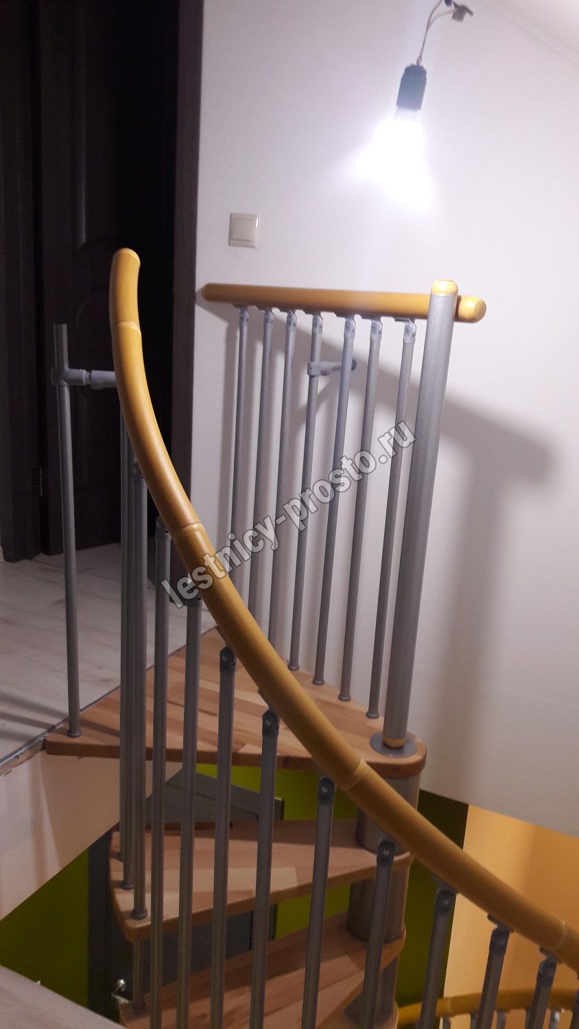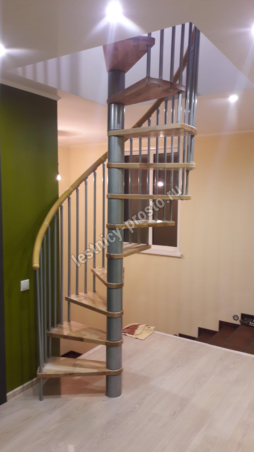Винтовая лестница SPIRAL WOOD d120 см, серебро, лакированный бук
