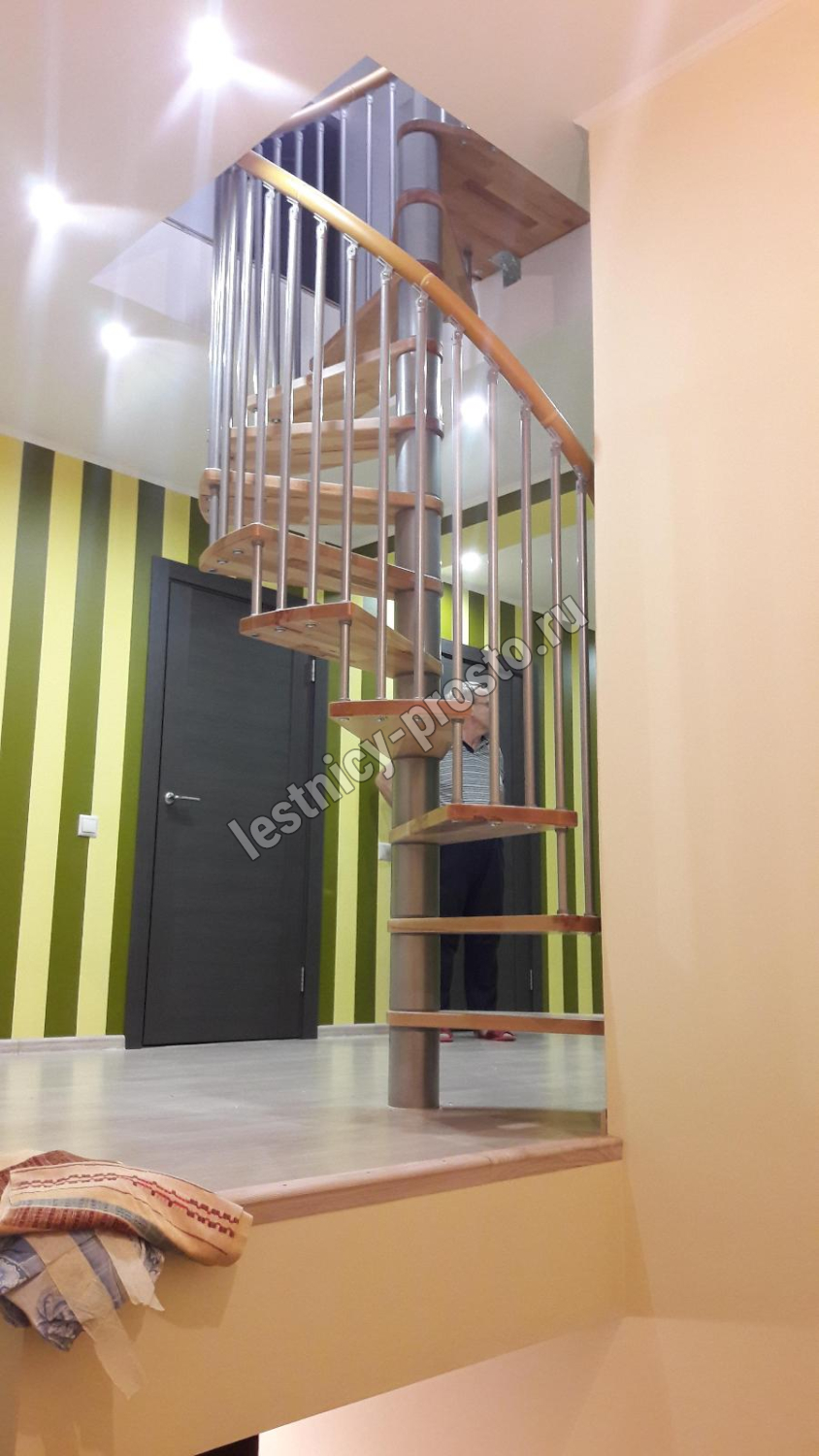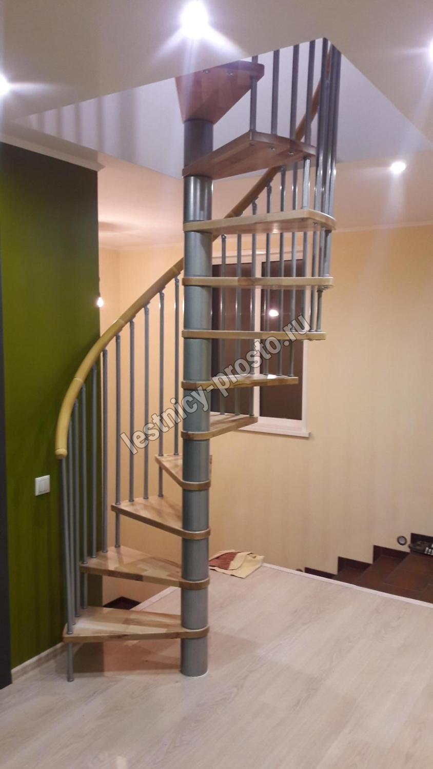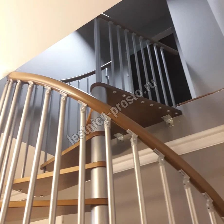 Винтовая лестница SPIRAL WOOD d160 см, серебро, лакированный дуб