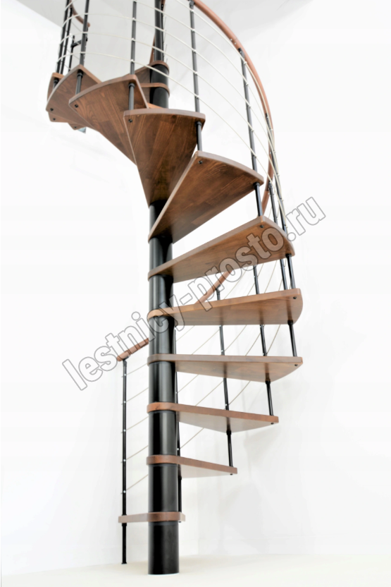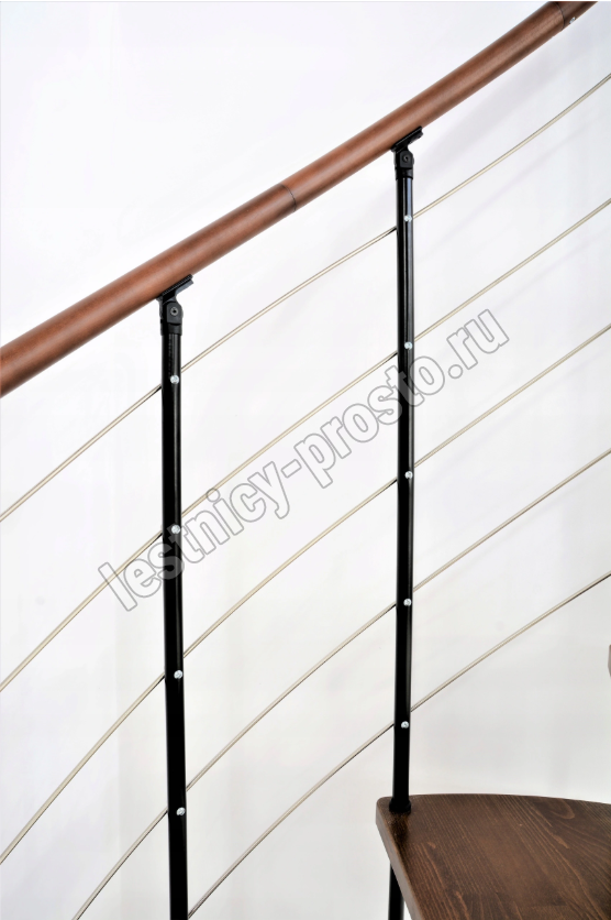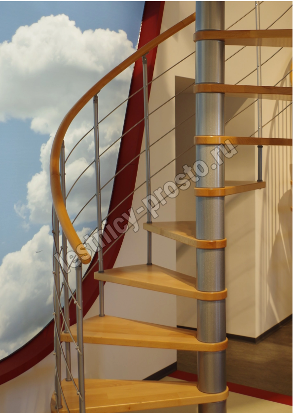 Благодаря возможности регулировать высоту шага с помощью пластиковых вставок (входят в базовый комплект), высоту лестницы можно варьировать в пределах от 2860 до 3090 мм. Кроме того, купив дополнительную секцию для этой лестницы, можно поднять высоту до 3320 мм. Ступени выполнены из сращенного дуба, покрыты износостойким твёрдым бесцветным лаком. Каркас серебристого цвета. Под заказ возможно изготовление лестницы другой расцветки.