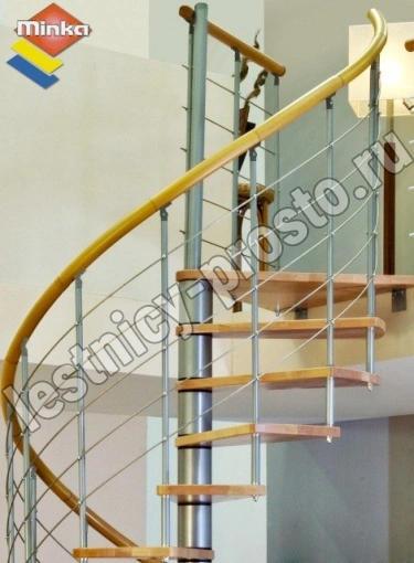 Cтупени и поручень изготовлены из массива дуба и покрыты специальным лаком от компании Минка, который предотвращает царапины, сколы или стирание поверхности при интенсивном использовании лестницы. Благодаря возможности регулировать высоту шага с помощью пластиковых вставок (входят в базовый комплект), высоту лестницы можно варьировать в пределах от 2860 до 3090 мм. Кроме того, купив дополнительную секцию для этой лестницы, можно поднять высоту до 3320 мм.