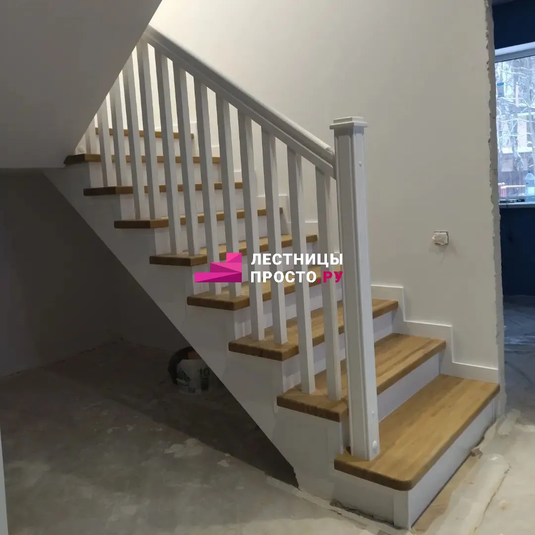 Лестница из ясеня с фигурными балясинами в частном доме по индивидуальному проекту LP-1-46