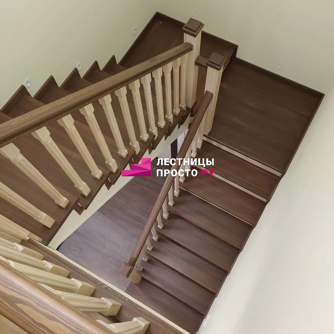 Облицовка двухмаршевой лестницы в загородном доме LP-1-50