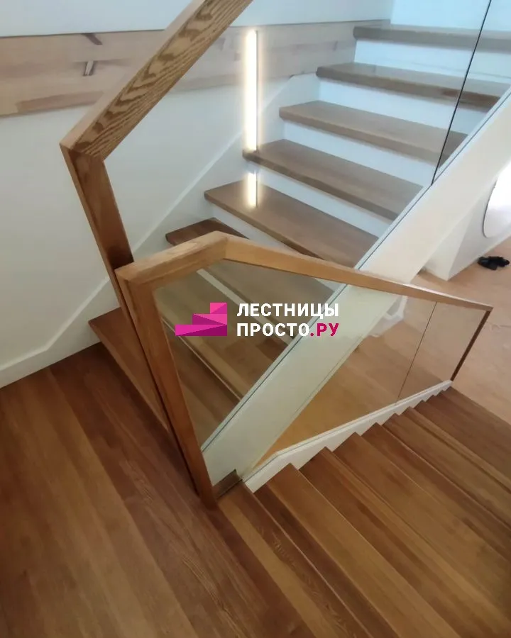 Лестница по индивидуальному проекту со стеклянным ограждением LP-2935